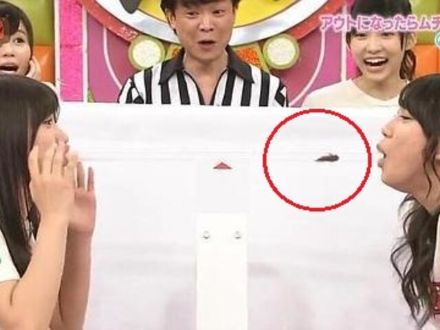 Como el juego que consiste en poder evitar una cucaracha que será puesto en un tubo. Gana la participante que sople más y que haga que su contrincante se trague el animal.