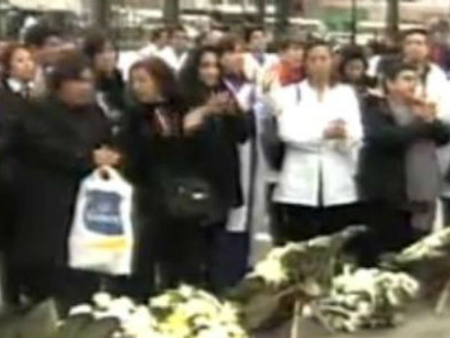 Esta mañana cerca de 20 doctores del hospital Dos de Mayo realizaron una singular protesta llevando lágrimas funerarias.