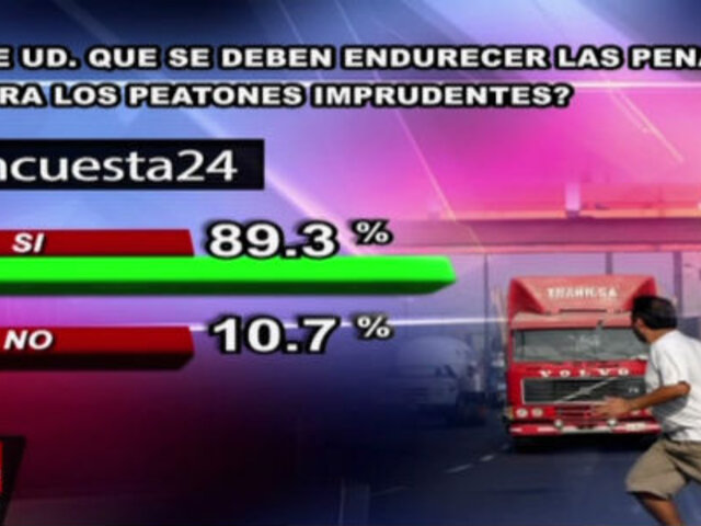 En Encuesta 24, casi un 90% ha optado por penas más drásticas contra los peatones que se desplacen imprudentemente por las calles y pistas de Lima.