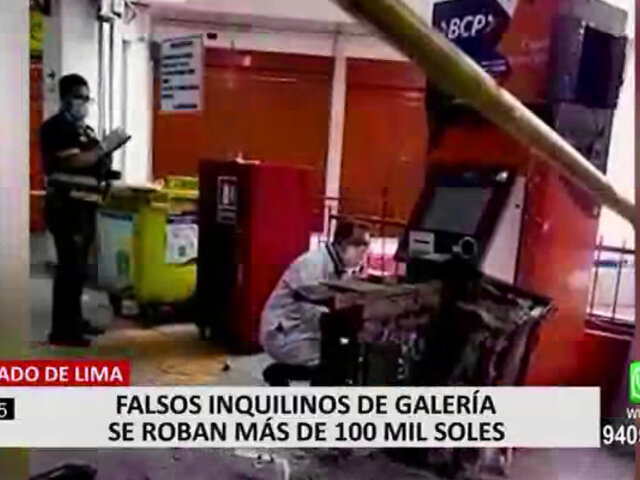 En el Cercado de Lima, tres delincuentes alquilaron un stand en un centro comercial llamada Calza Mundo y destruyeron un cajero automático que se encontraba en el inmueble para robar más de 100 mil soles.