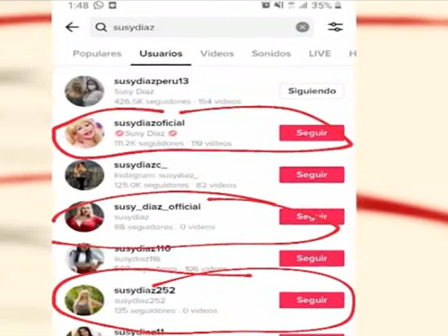 La página de Facebook en la que suplantaban la identidad de Susy cuenta con medio millón de seguidores. Se trata de un perfil en el que robaron los vídeos y fotografías de las páginas oficiales de Susy Díaz,  cobrando altas sumas de dinero a cambio de la supuesta participación de la exvedette en eventos o por sus saludos por video.