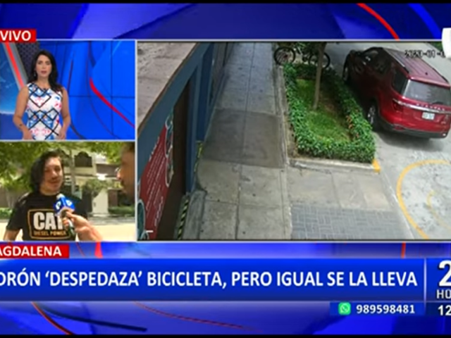 Cámaras de video vigilancia de una vivienda en el distrito de Magdalena, captaron el preciso momento en el que un delincuente desarma una bicicleta que se encontraba encadenada en la calle para llevársela.