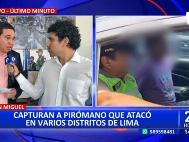 Agentes de la Policía Nacional del Perú (PNP) y el Serenazgo de San Miguel, lograron detener a un pirómano, quien en los últimos doce días ha sido protagonista de varios atentados en diversos puntos de la capital.