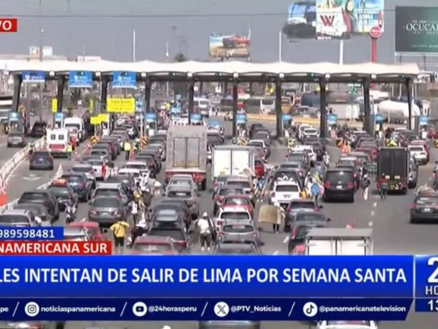 Un intenso tráfico se viene registrando desde horas de la tarde de este jueves 17 de abril en el peaje de Villa, ubicado en la Panamericana Sur, debido a los miles de vehículos que buscan salir con dirección al sur por Semana Santa.