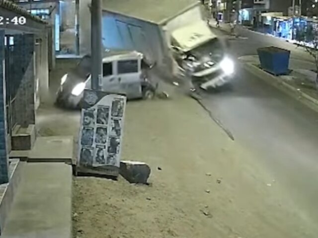 El choque se produjo a la altura del mercado Santa Rosa, en el anexo 8. Cámaras de seguridad de la zona captaron el momento exacto en el que el camión pierde el control y se estrella violentamente contra la unidad menor, además de colisionar con un poste y otros vehículos.