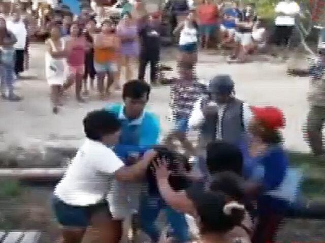 En Iquitos dos mujeres se enfrentaron a golpes disputándose una donación de madera para iniciar la obra de construcción de un puente que servirá a más de 100 familias que viven en una zona inundable de la ciudad. Como se observa en las imágenes ambas se agarraron a golpes en medio de una avenida del asentamiento humano San Lorenzo. Estas vecinas se jalaron de los pelos, se lanzaron puñetes y estuvieron a punto de caer a un canal de agua.