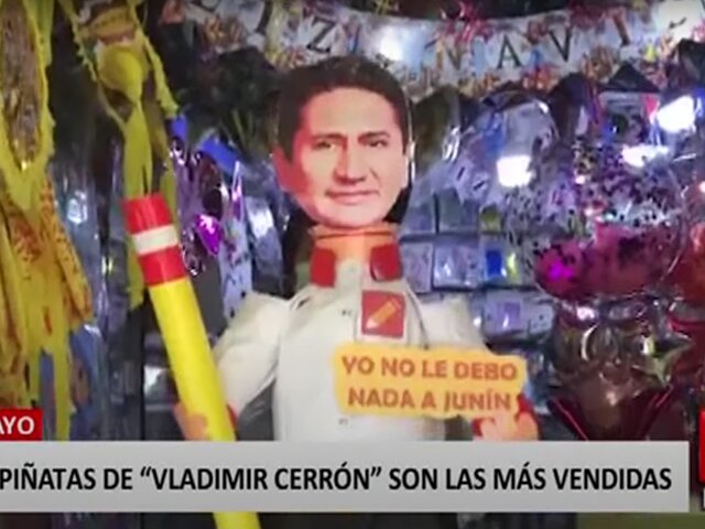 Entre ellos destaca el exgobernador regional de Junín, Vladimir Cerrón, cuya imagen invadió las piñaterías del distrito de El Tambo y según los comerciantes, se vende como “pan caliente”.