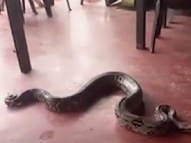 En Chanchamayo, los propietarios y clientes de un restaurante del sector de Sangani, quedaron asombrados al encontrar a una enorme boa dentro del local.