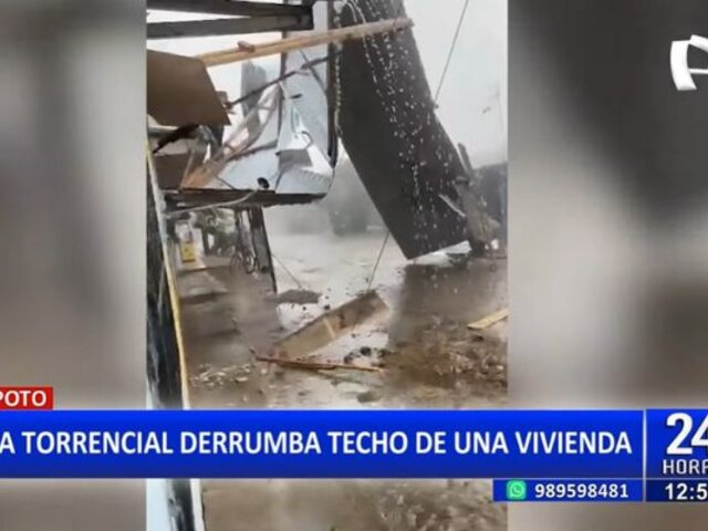 Debido a los fuertes vientos y lluvias torrenciales, una vivienda en la ciudad de Tarapoto terminó siendo afectada. El techo de calamina de dicho inmueble fue derrumbado por la fuerza de la naturaleza.