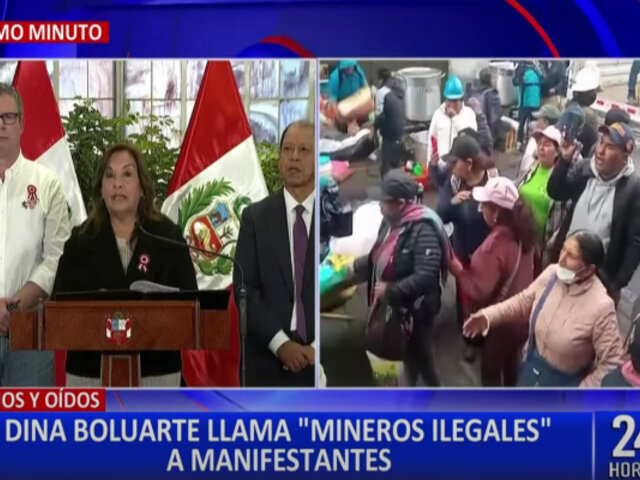 En declaraciones desde Palacio de Gobierno, la dignataria tildó a los manifestantes como ‘mineros ilegales’, sin embargo, hizo un llamado a las personas que se encuentran participando en esta actividad a entablar un dialogo para que pasen a la formalización.
