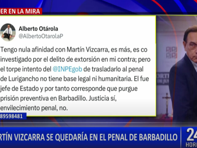 “Tengo nula afinidad con Martín Vizcarra, es más, es co investigado por el delito de extorsión en mi contra; pero el torpe intento del INPE de trasladarlo al penal de Lurigancho no tiene base legal ni humanitaria. Él fue jefe de Estado y por tanto corresponde que purgue prisión preventiva en Barbadillo. Justicia sí, envilecimiento penal, no”, escribió en su cuenta de X.