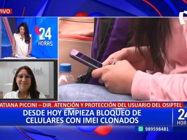 En una entrevista con Paola Moreno para 24 horas Mediodía, Tatiana Piccini, directora de atención y protección del usuario - Osiptel, informó que las empresas operadoras del servicio público móvil realizará el día de hoy el bloqueo de 16,821 IMEI detectados como clonados, los cuales estaban vinculados a 53,303 líneas móviles a nivel nacional.