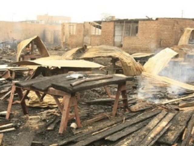 Un incendio de proporciones destruyó una carpintería ubicada en la cuadra cuatro de la avenida Los Álamos, en el distrito de San Juan de Lurigancho. El siniestro se habría producido por un corto circuito.
