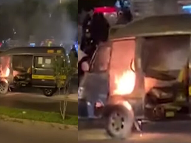 En plena Av. Faucett en el Callao, una combi de transporte público llena de pasajeros se incendió esta madrugada.