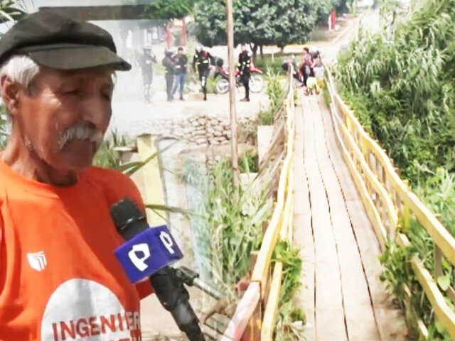El señor, Hilber Domínguez es un comerciante del lugar y ante la crecida del río, cruzar con su mercadería le resulta más difícil. el puente tiembla hasta llegar al otro extremo