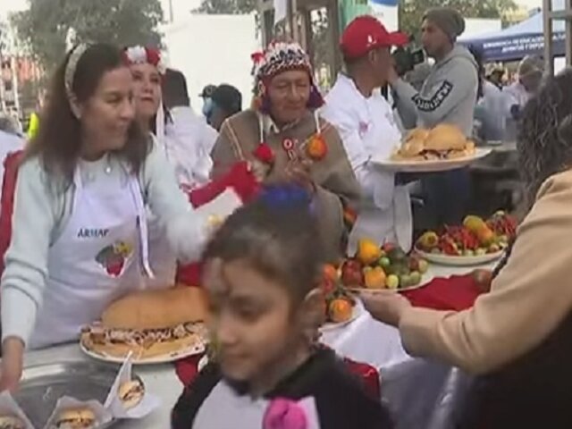 En el lugar también se preparó el pan con chicharrón más grande del país, acompañado de camote frito y ensalada criolla, elaborado por más de 50 cocineros que trabajaron al instante para servir el platillo caliente.