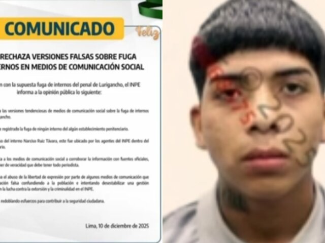 “El INPE no tiene registrada la fuga de ningún interno. Respecto al caso del interno Narciso Ruiz Tábara, este fue ubicado por los agentes dentro del recinto penitenciario”, señaló el comunicado. Además, exhortó a los medios de comunicación a corroborar la información con fuentes oficiales.