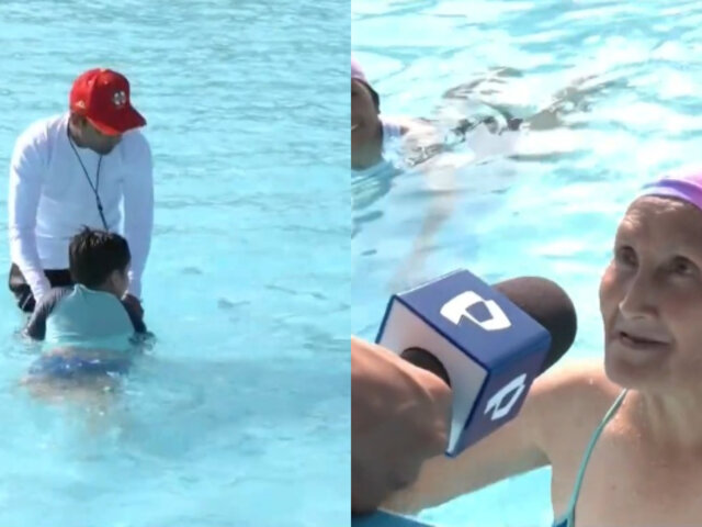 Un equipo de Panamericana Televisión encontró a grupos de personas disfrutando del agua y realizando aeróbicos. "A veces estamos tristes o mal físicamente y sí nos ayuda bastante", dijo una entrevistada.