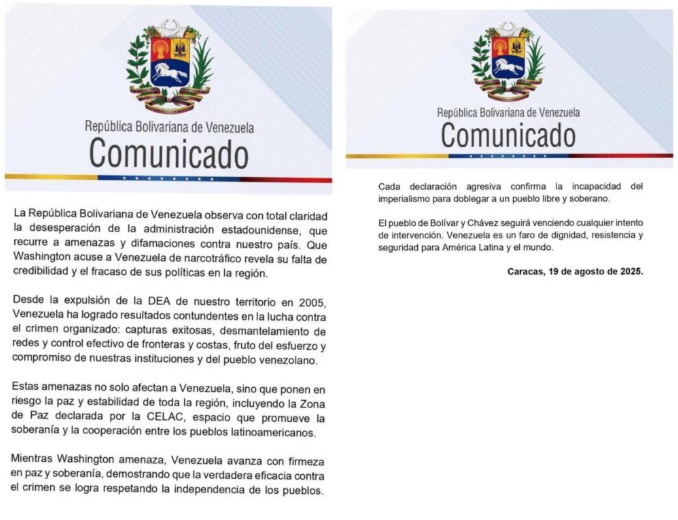 El gobierno de Nicolás Maduro, mediante un comunicado oficial difundido por el canciller Yván Gil, rechazó las recientes declaraciones de Washington y calificó como “amenazas y difamaciones” los señalamientos contra altos funcionarios venezolanos. Según el texto, “que Washington acuse a Venezuela de narcotráfico revela su falta de credibilidad y el fracaso de sus políticas en la región”.