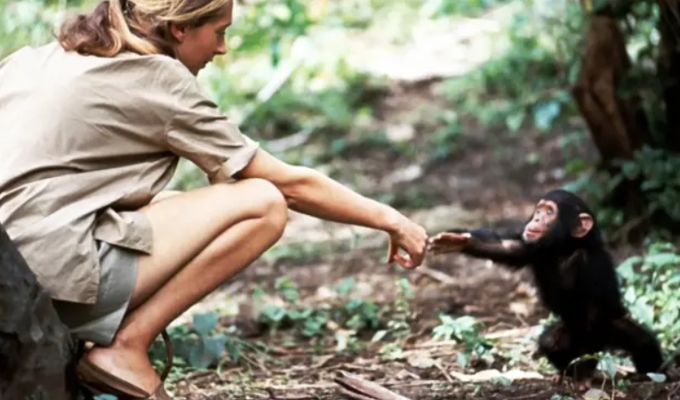 En la fotografía, capturada por su esposo Hugo van Lawick, se ve a Goodall extendiendo su brazo hacia el pequeño Flint, mientras el chimpancé responde al gesto en un contacto cargado de confianza. Publicada en National Geographic en 1965, la imagen generó controversia porque Goodall rompía las reglas académicas: en lugar de números, dio nombres a los chimpancés, reconociéndolos como individuos con emociones y personalidades. Para la propia científica, la foto evocaba la pintura de Miguel Ángel en la Capilla Sixtina, al mostrar la conexión entre especies.