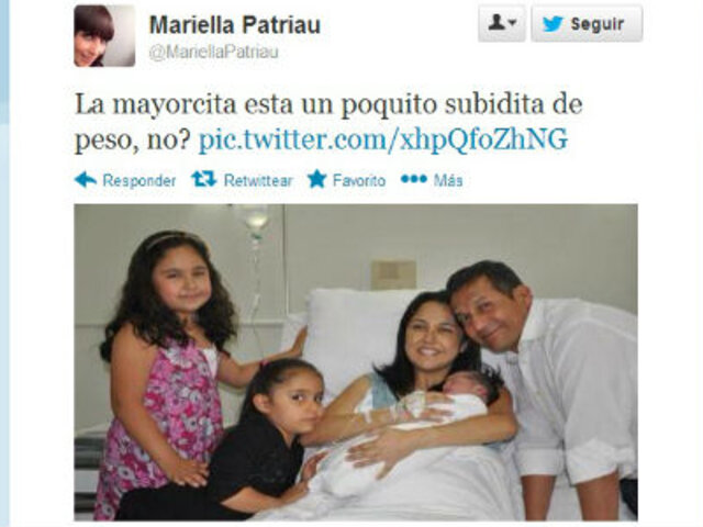 Una verdadera ola de insultos y opiniones desfavorables ha generado un comentario que hiciera la periodista Mariella Patriau, luego de que, a través de su cuenta de Twitter, comentara una foto de la familia presidencial.