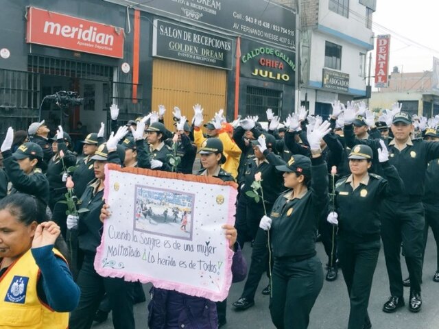 Unas 3,000 personas, entre ellas miembros de Policía Nacional, marcharon hoy por diversas calles y avenidas de San Juan de Lurigancho, en contra de la violencia hacia la mujer, y como respuesta a la muerte de la joven Eyvi Ágreda.