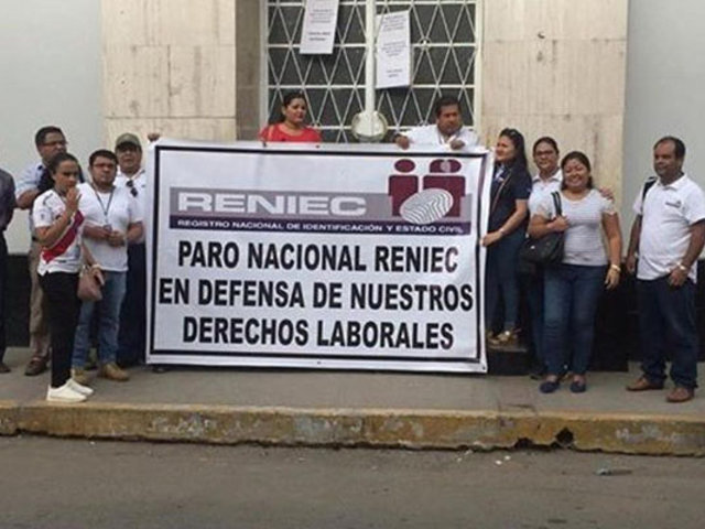 El dirigente recordó que el paro nacional, que es acatado por 4,600 trabajadores en todo el país, no permite a los ciudadanos realizar trámites como cambio de DNI, duplicados, registros, certificados, entre otros.