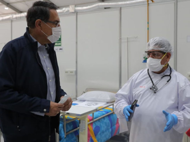 El presidente Martín Vizcarra participó este mediodía en la presentación del Centro de Atención y Aislamiento para pacientes Covid-19, implementado en el Hospital Hipólito Unanue.