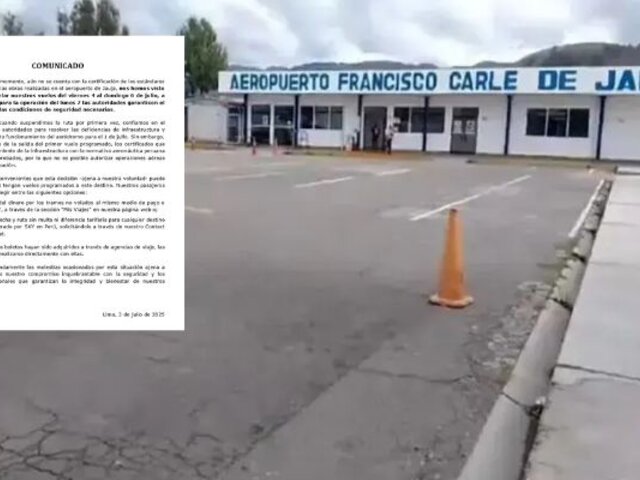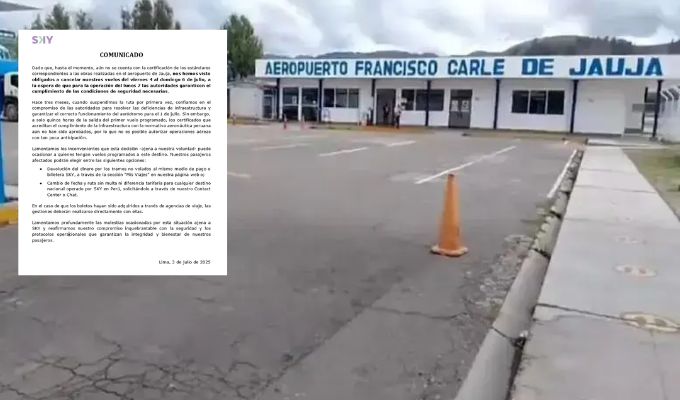La aerolínea SKY emitió un comunicado anunciando la cancelación de sus vuelos desde y hacia el Aeropuerto de Jauja, los cuáles estaban programados para los días viernes 4, sábado 5 y domingo 6 de julio.